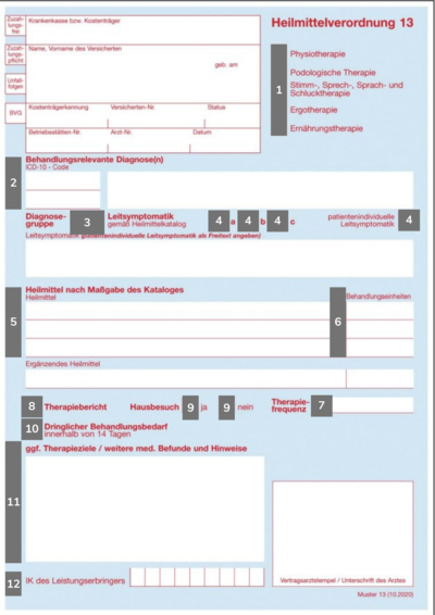 Auf der Verordnung ist der Heilmittelbereich anzugeben. Zur Auswahl stehen Maßnahmen der